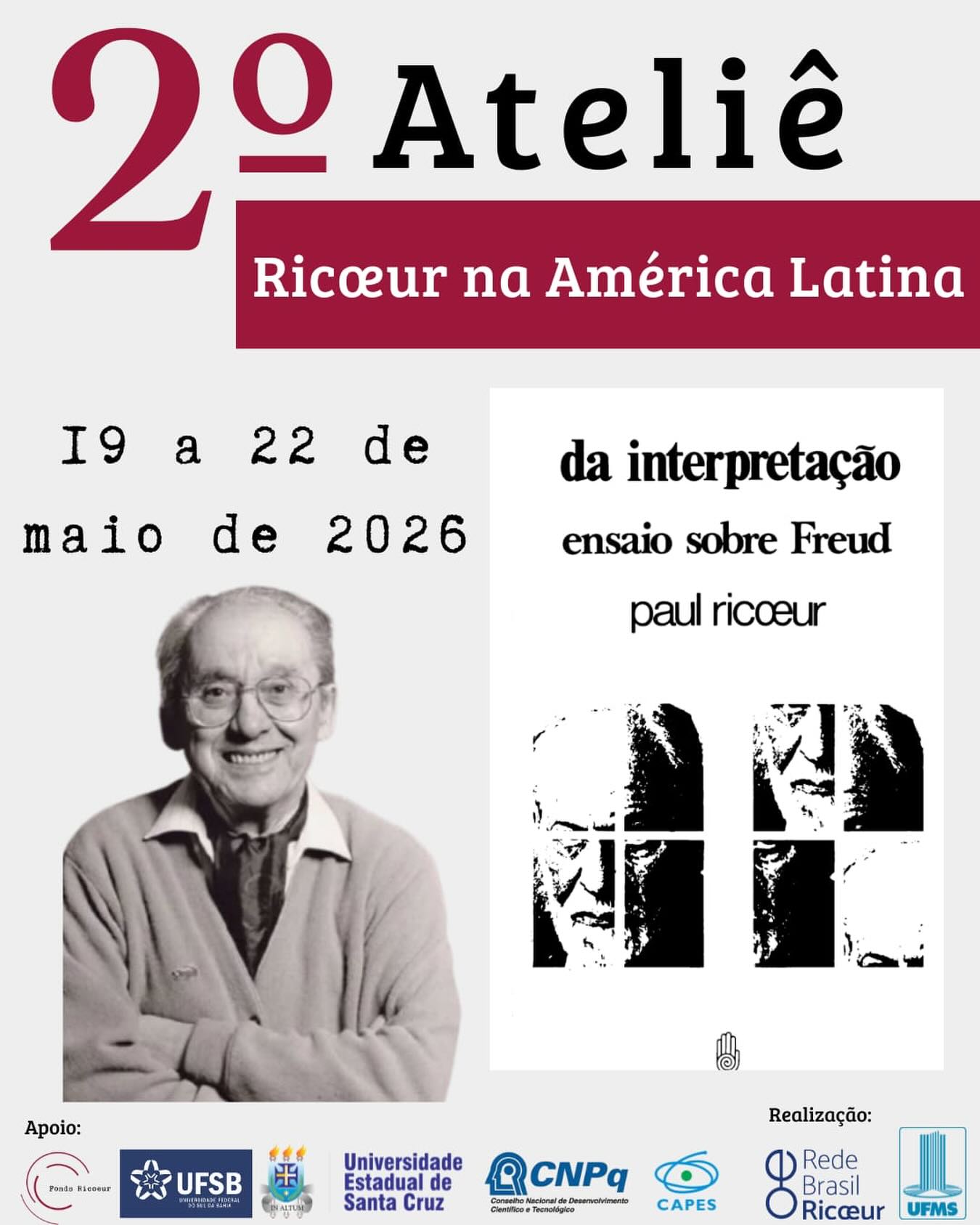 A Rede Brasil-Riceur anuncia o 2° Ateliê Ricour na América Latina, a realizar-se entre os dias 19 e 22 de maio de 2026, na UFMS - Universidade Federal de Mato Grosso do Sul, campus de Campo Grande.
